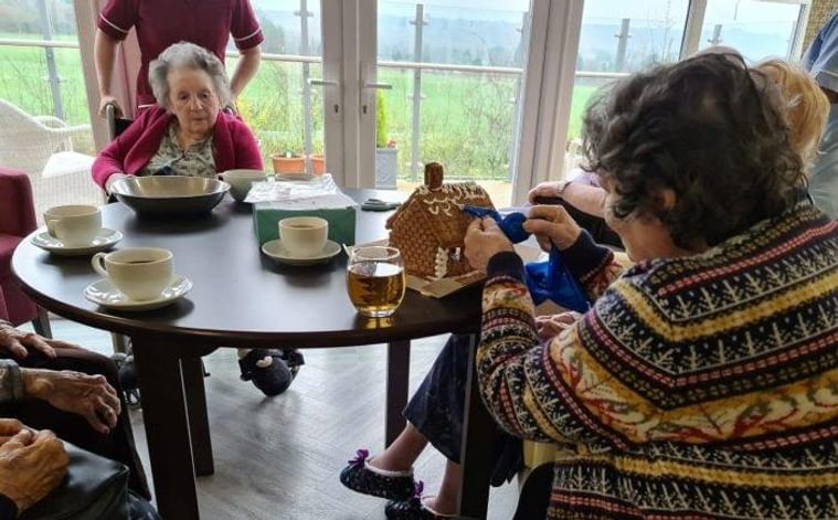 The residents and team at Blenheim Court Care Home split into two very competitive teams led by Charlotte (Wellbeing Lead) and Tess (Hospitality Manager) to create some festive gingerbread houses. Both teams worked really hard on their masterpieces and had a great time together with a lot of laughter. The final gingerbread houses have taken pride of place in the Bistro this week for everyone to see.