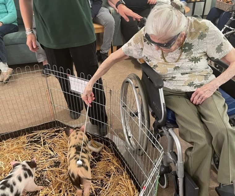 The piglets came with their own pen and provided a lively side show for residents. Although they were too young to come out for a meet and greet, they loved having their backs scratched with a special long-handled comb. Resident Louise, who made friends with the piglets quipped, “Will they notice if I keep one?!”