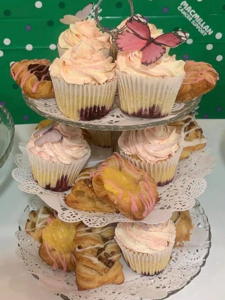 The menu consisted of tea, coffee, cappuccino, hot chocolate and a selection of cakes and savoury bakes. With coffee and walnut cake, berry cupcakes, Victoria sponge, cheese twists and sausage rolls all on offer, all baked by our very own catering team.