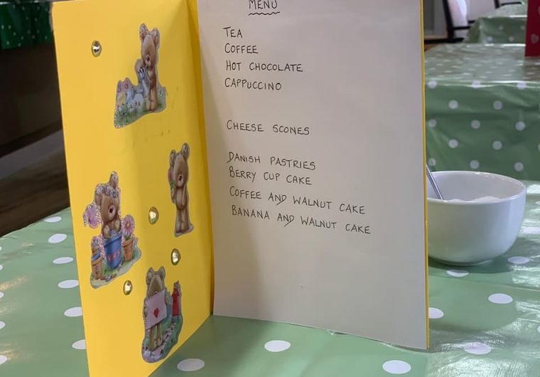 Our Lead well Being Coordinator created our very own ‘Coffee Morning Menu’ with our residents designing and decorating the colourful menus themselves, they then sat pride of place in the middle of the tables.