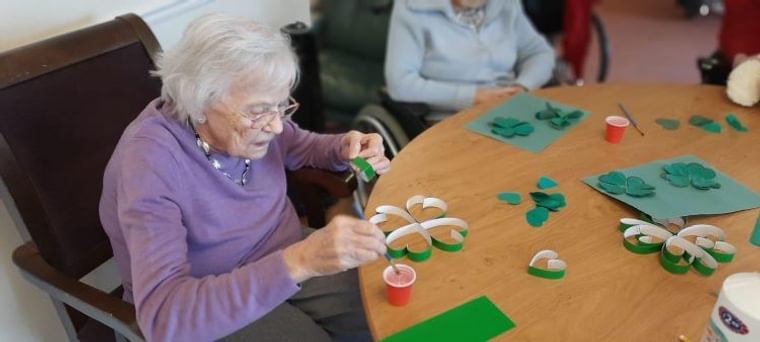 Last Thursday, The Orchard residents and staff celebrated St Patrick’s Day, the patron saint of Ireland, in true Irish style. Before the day began, residents gathered for their usual arts and crafts, with a certain green theme this time, making suitable decorations for the party.