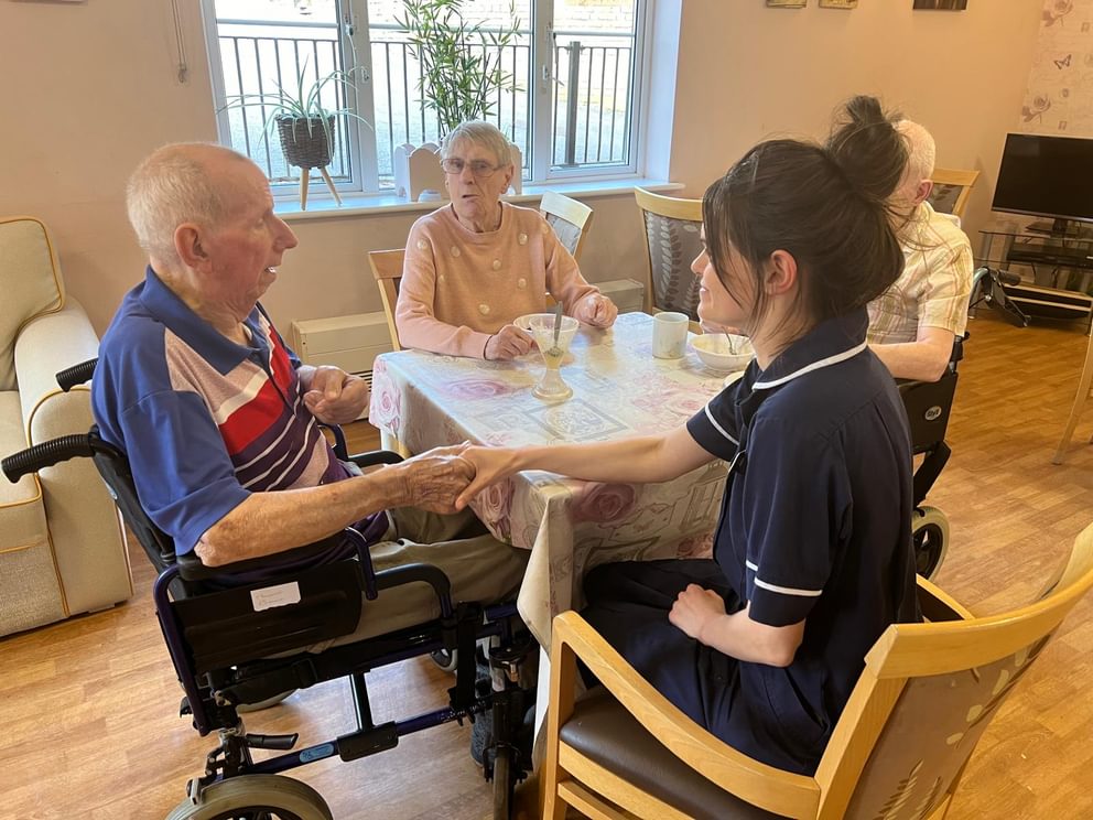 Working with Chris Elsley, our expert Dementia Trainer, is inspirational. Her passion for dementia care is outstanding and this really stood out in her training. I especially enjoyed how she got us to step into the shoes of people living with dementia, helping us to understand how our residents might perceive the world. I think this experience can only improve the level of care and empathy we give. We also learned the ‘hand under hand’ technique, where a carer gives subtle support that still allows the resident to have independence while being assisted – when eating, for example. In this way, the resident feels in control and retains their dignity.