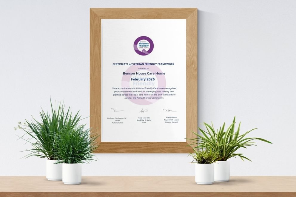 We’re proud to share that Benson House Care Home has achieved Veteran Friendly Framework (VFF) accreditation, recognising our commitment to supporting the practical, emotional and social needs of the Armed Forces community living in care homes.