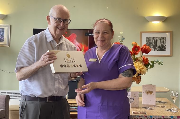 Residents, friends and the team at Castle View Care Home on the Isle of Man got together to mark a very special occasion on 29th February 2024 – the 60th wedding anniversary of resident couple, Peter and Marylyn.
