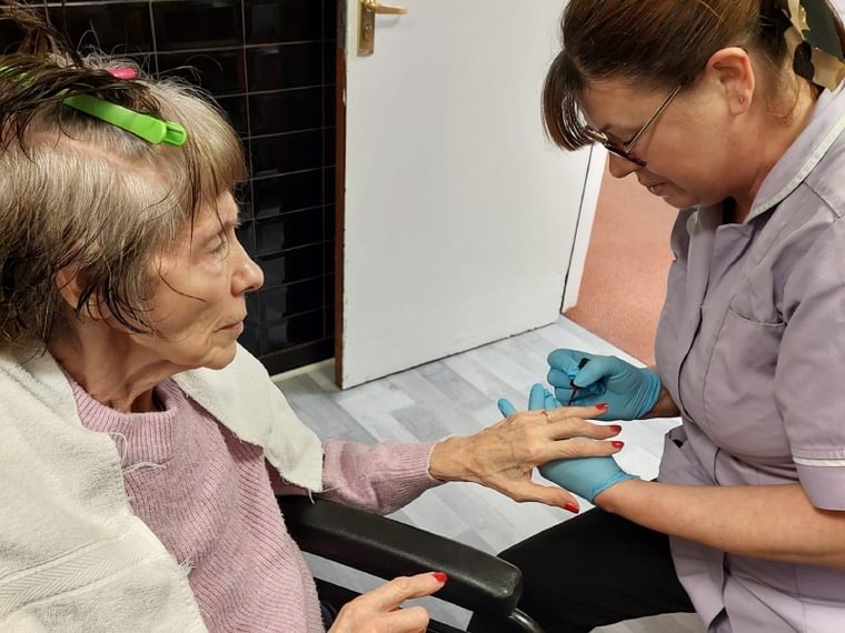 Fast forward to today, and Mary's love for looking her best is as strong as ever. With the unwavering support of her children, Richard and Julie, she continues to embrace her daily routine including applying makeup, weekly visits to our salon for hairdressing and manicures, and meticulously coordinating her outfits.