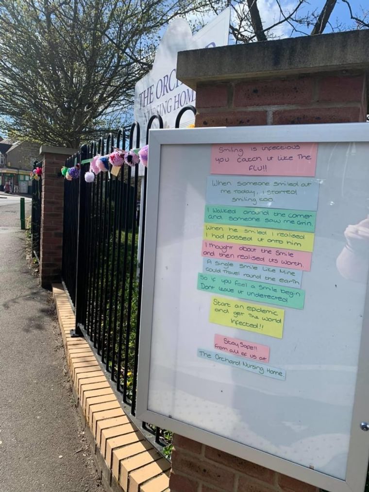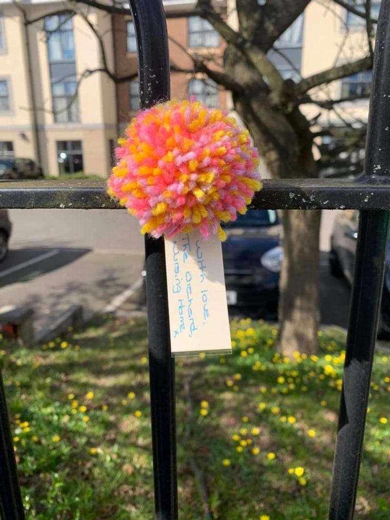 Brightly coloured pompoms have been appearing on the fence at The Orchard in St Albans carrying messages of hope and happiness for anyone who may wish to read them.