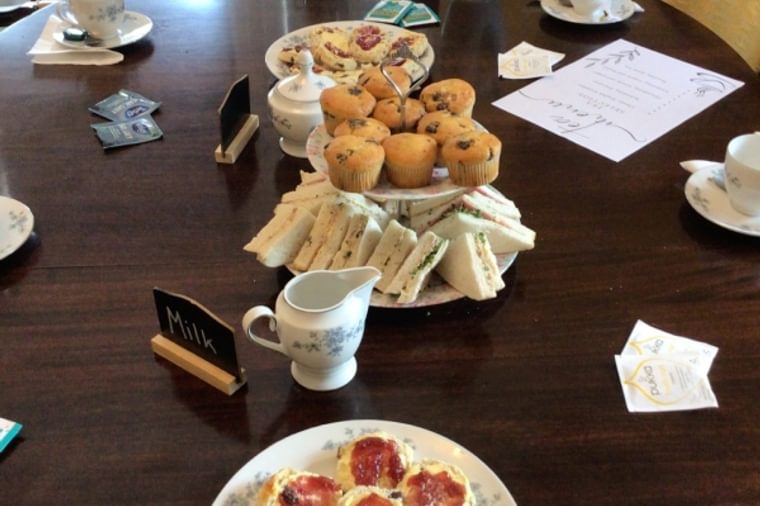Later that afternoon, the mugs were put to good use at a tea party, held in the Gold Room. The team had done a lot of research on how to lay a table for afternoon tea in the traditional way and some residents came forward to help set out the crockery. There was a conversation about different types of tea and the majority favoured the traditional English breakfast, with Earl Grey the next most popular amongst the group. Herb and fruit teas such as lemon and fennel, green, and peppermint tea were also available.