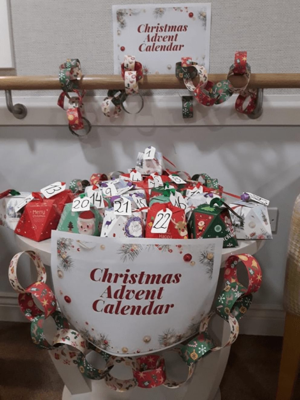 There is not a trace of a ready-made bought advent calendar at Horsell Lodge Care Home this year. The residents and team joined forces to create 24 wonderful boxes and fill them with all sorts of treats. Then each day a resident opens the box corresponding to their room number, any box without an associated room number goes to the lucky member of staff walking by at the right time.