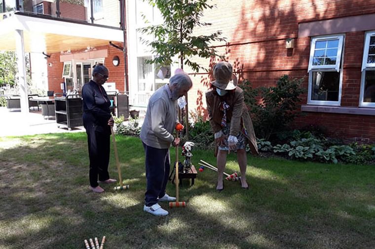 The team got dressed up for the occasion and with the residents enjoyed a brief shot at croquet in the lovely landscaped gardens, giving them a chance to enjoy the glorious weather.