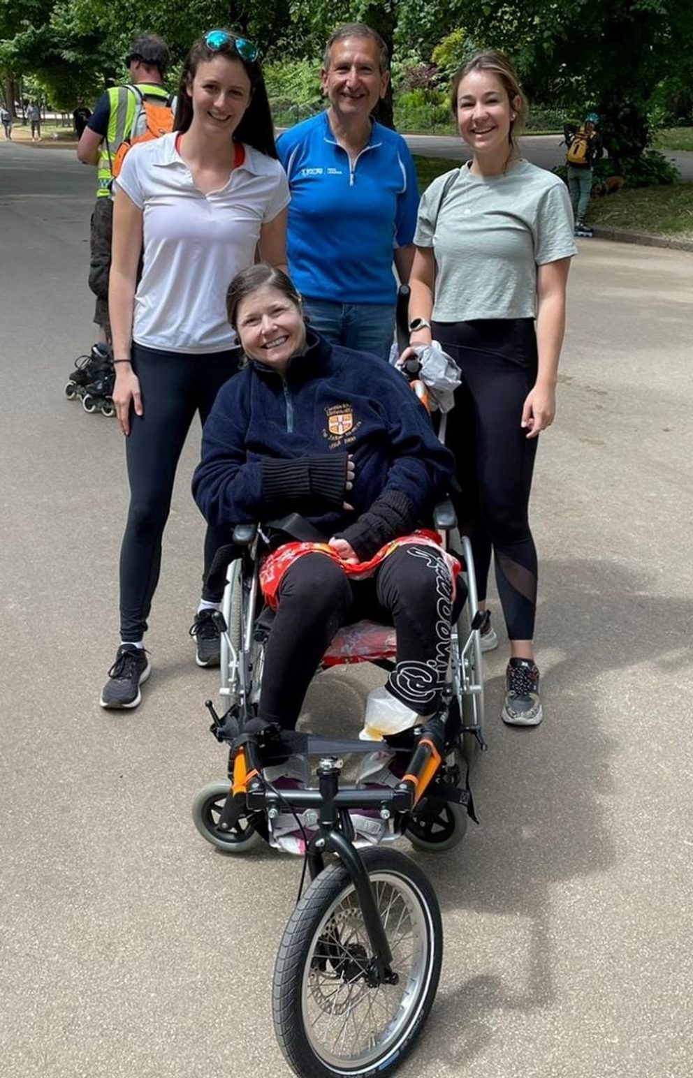 Joni had further support from Wheels and Wheelchairs who very kindly lent her a sports wheelchair for the race. Wheels and Wheelchairs are a group of volunteers, wheelchair users and skaters who accompany disabled persons in sport activities, every Saturday, in Battersea Park.