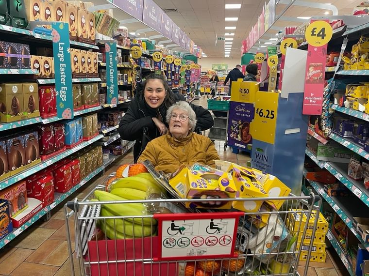 Residents took their seats on the bus, already planning what they’d be looking out for in the supermarket. Serial shopper Eileen is a regular on the weekly excursions, often first to put her name on the list, and this particular outing brought back memories: “It reminds me of when I worked for Marks and Spencer’s many years ago, I only went in as a Christmas temp and stayed on 10 years. We bought fresh lemons for the pancakes and also blueberries and raspberries. Some of the fruit we bought I had never even heard of before, like kiwi fruit.”