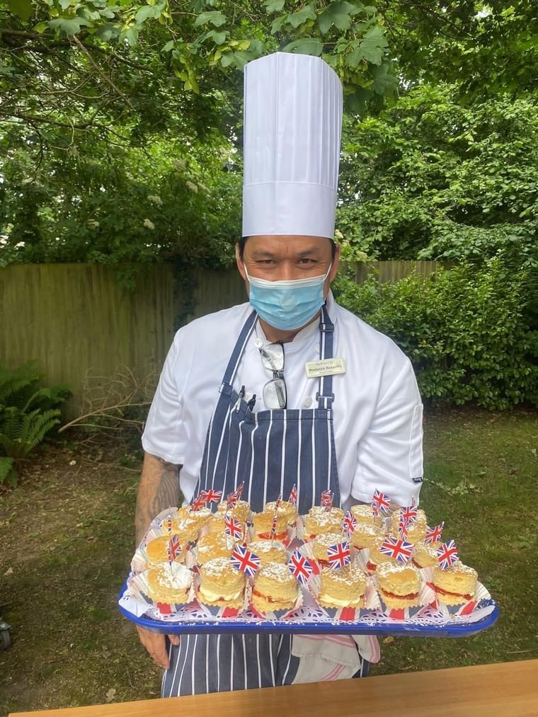 The jubilee celebrations was a chance to get everyone together in the gardens at the home to enjoy the wonderful weather and mark such a special occasion. The hospitality team put on a fantastic BBQ and due to the royal occasion made traditional scones and victoria sponge cake for dessert, with a range of refreshments as well.