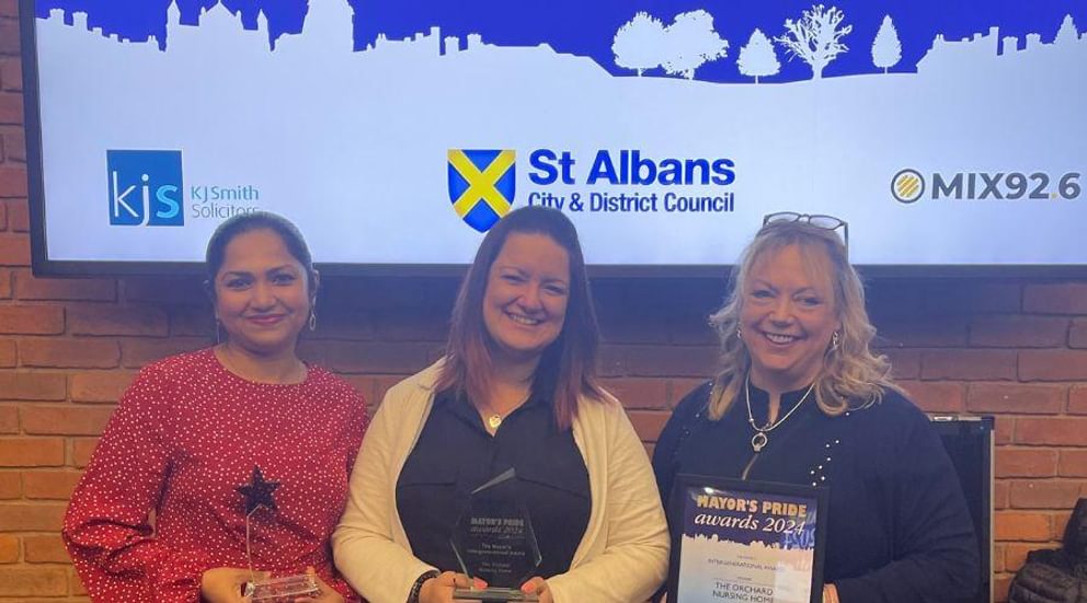 A team from the Orchard Nursing Home were delighted to receive the Intergenerational Award at the St Albans Mayor’s Pride Awards held at St Albans Civic Centre on Tuesday 5th March.