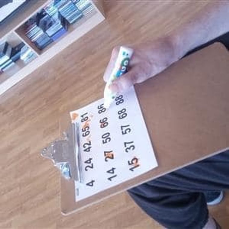 This week, Brenda had a go at calling out the first game, before going onto clear out the prize box with a winning streak! She won 1 line, 2 lines and full house – Lucky Brenda. Other winners this week were Nick and Peggy
