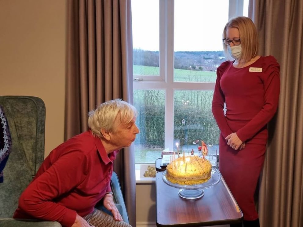 The residents and team at Blenheim Court Care Home joined in to celebrate a resident's 90th birthday to make the day special. The Chef's at the home made her favourite cake, which was a vanilla sponge with butter cream and jam which she loved and commented how delicious it was.