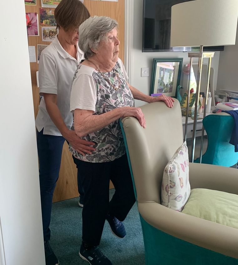 At the time of assessment, Rosemary was walking short distances in her room, slowly, using a 'gutter frame' - a walking aid for those who need extended support - and always supervised. “She’d previously had a fall and felt extremely anxious about falling again or injuring herself simply by walking”, Helen explained.