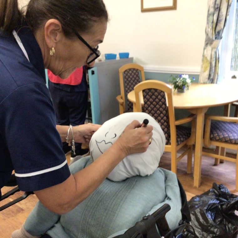 Guy Fawkes Night on 5th November started the month off with a bang! Residents got together to make decorations for the day, which involved lots of colouring in and creating pieces of art using brightly coloured autumn leaves. The Wellbeing team took the production of a ‘Guy’ very seriously, designing and making a full-sized Guy Fawkes from recycled materials.