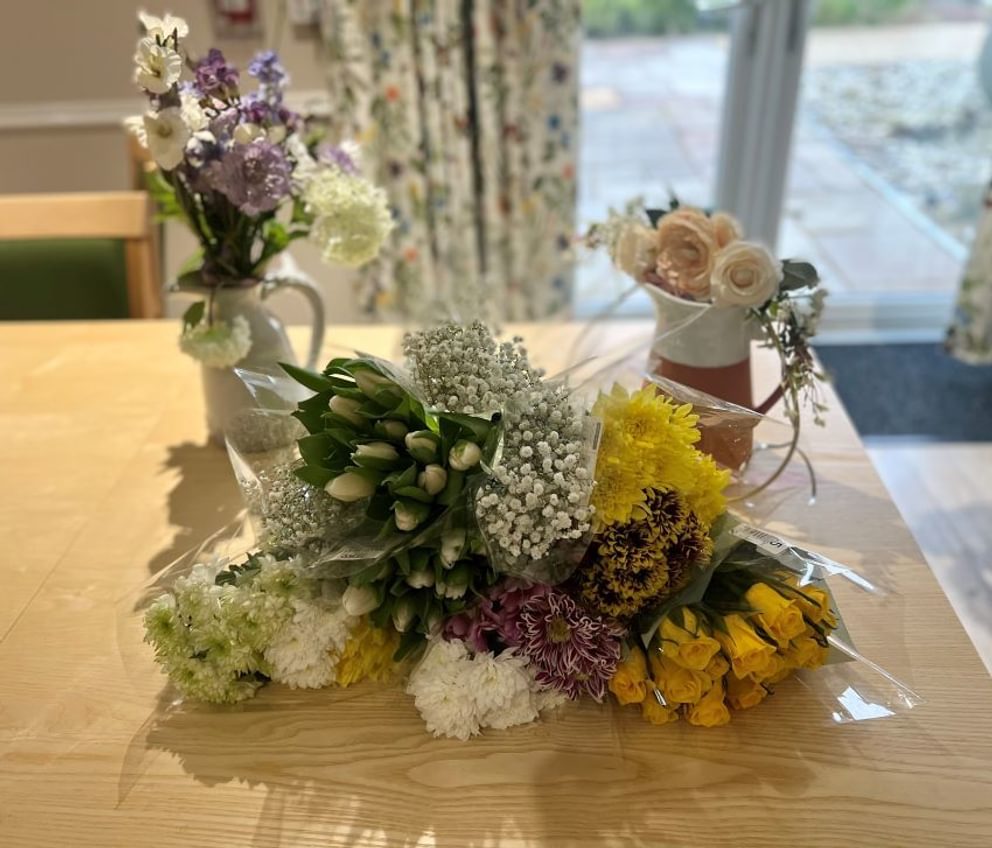 The residents at Broadbridge Park Care Home have been busy with a spot of flower arranging, they have made beautiful bouquets which, with the help of Jacqui the Wellbeing Co-ordinator, will be displayed all throughout the home. With a lovely variety of colours, the residents were able to get as creative as they liked, whilst having a lovely afternoon with one another served with tea, coffee, and some freshly baked cakes by Head Chef Chris. The home has been donated some stunning vases that will accompany the beautiful bouquets.