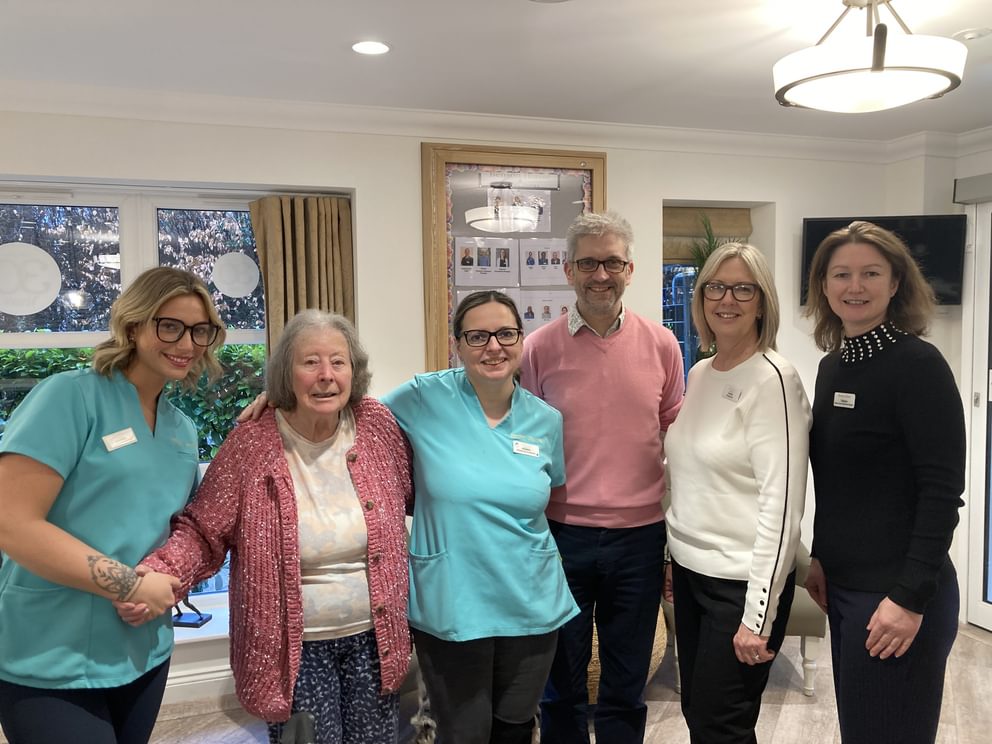 The Benson House team was understandably delighted and lost no time in proudly posing for a picture with one of their resident veterans, Diana, who was a typist in the WRENS.