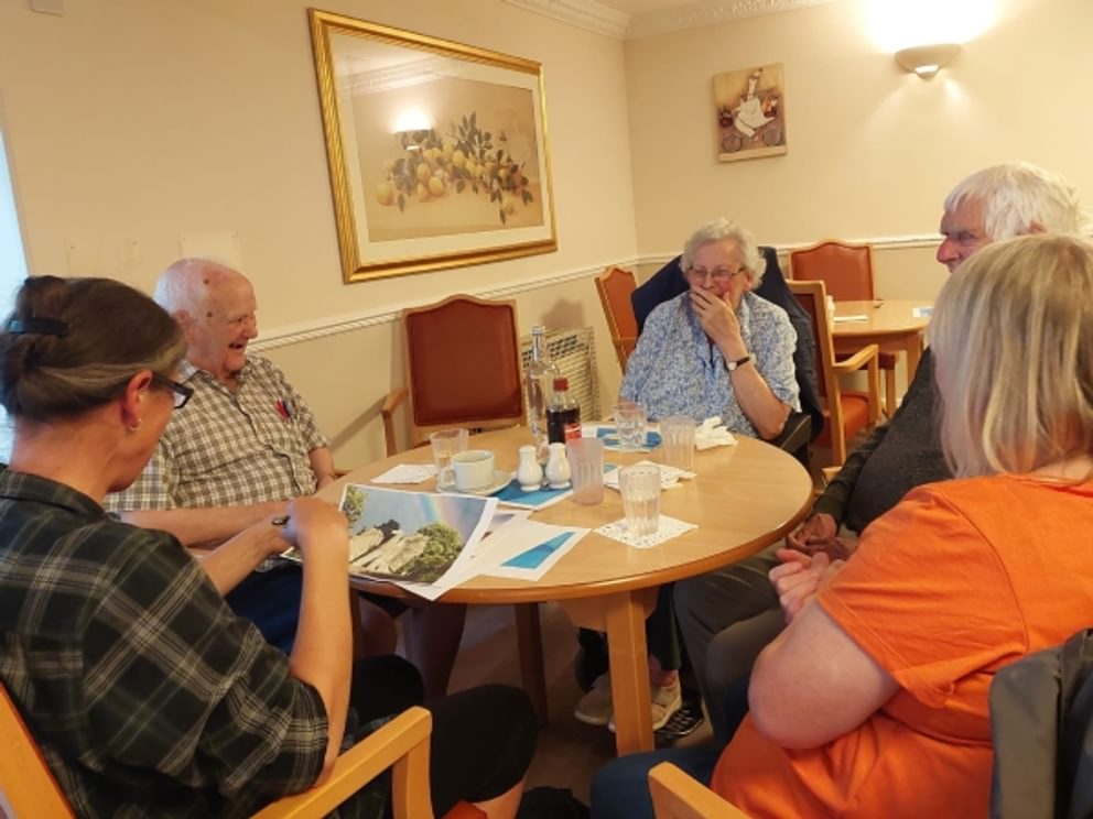 Thursday was action packed! First, a vintage singalong, with Wellbeing girls Agnes and Catrina dressing in various fashions from decades past. "My aunt used to wear polka dot dresses in the 40's" exclaimed resident Cyril. It brought back nice memories all round. In the evening, the team hosted ‘Quiz and Chips’. Two huge boxes of proper fish & chips were brought round from the local chippy, and everyone got stuck into a delicious feast before taking part in the quiz. After three rounds, the winners were reigning champions, Ray’s Angels.