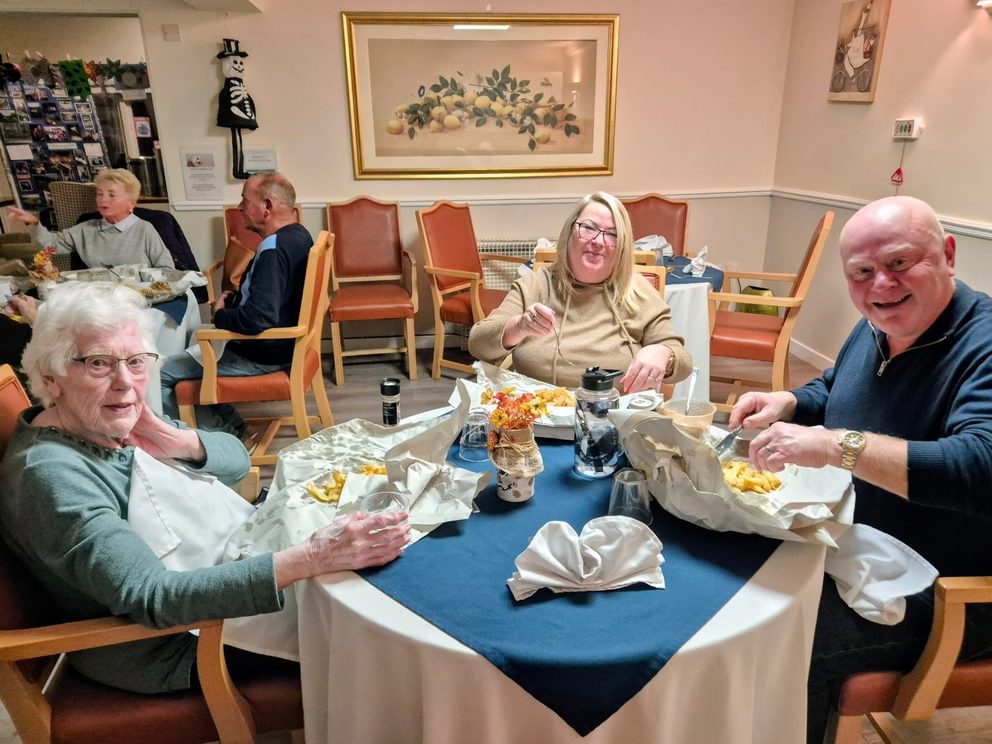 The activities team sprang into action, first of all making a list of all who wanted to join in so most importantly, they could get the ‘fish and chip’ order in. Team members and families were asked for donations of prizes and these were gathered together in preparation for a raffle to be held at the Quiz n Chips event. Everyone started to look forward to an evening of fun, food and socialising.