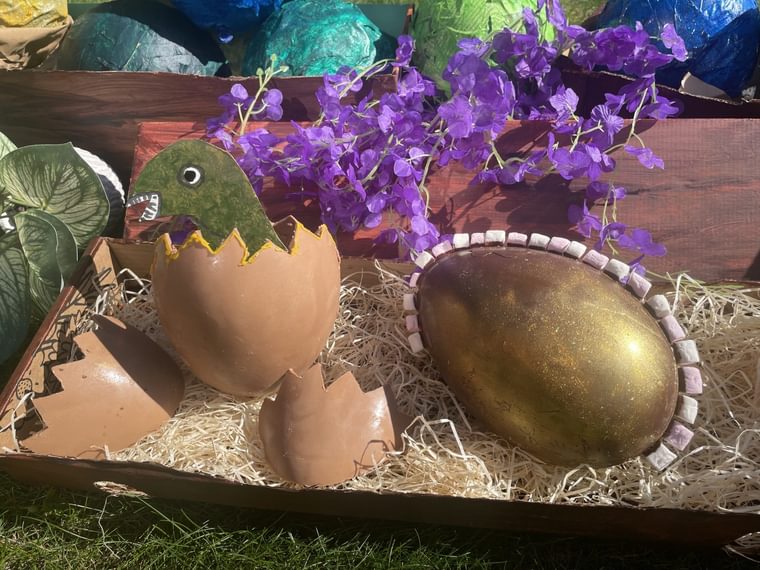 The judges named Horsell Lodge Care Home in Woking a close second as they scored high marks for imagination and creativity with their dinosaur themed egg, which came with a character - ‘’Jack the Dinosaur’- and a story. Helped by residents, the team created a home for ‘Jack’ from recycled and repurposed materials. Despite keeping him busy with gardening and security duties, Jack was lonely so he was signed up to find a mate on carbondating.com. The successful union resulted in two baby dinosaurs bursting out of a golden chocolate egg to join the Horsell Lodge family!