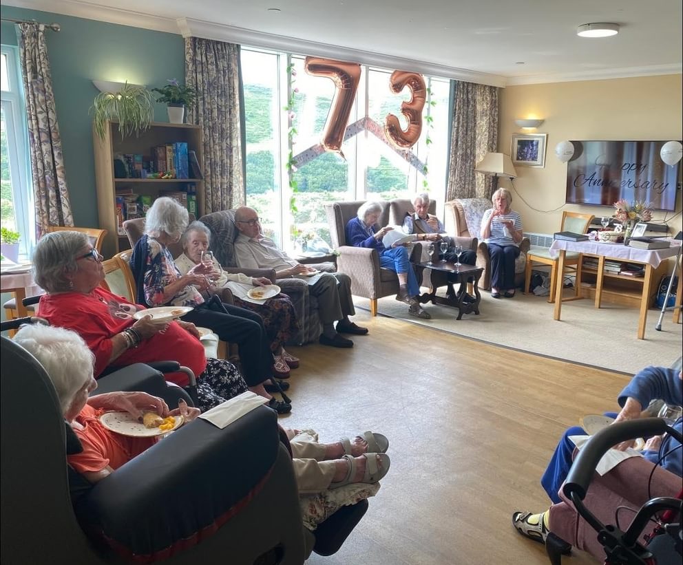 When the day of their 73rd anniversary arrived, Dorcas & Albert began by having lunch together in the dining room. Member of the Castle View team congratulated them individually, and residents also wished them well and gave them cards.
