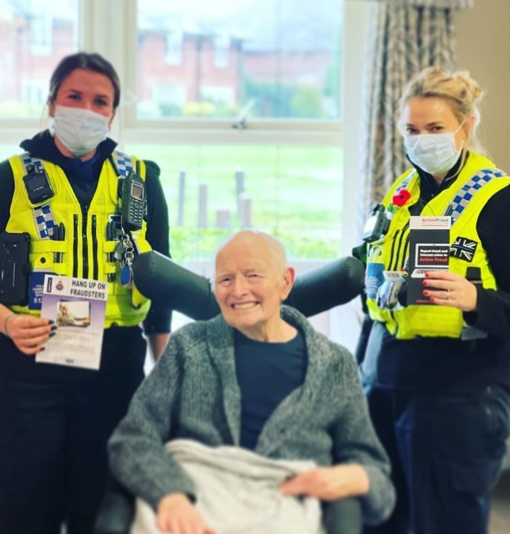 The residents and team at Homefield Grange Care Home had a visit from their local Community Officers. They came in to talk to everyone about scams over the Christmas period and how we can all keep ourselves safe, they handed out items such as attachable bells which can be attached to purses and wallets so it acts as an alert. The residents thoroughly enjoyed their visit and were curious about how to stop unwanted calls on mobile phones and post that arrives asking for personal details.