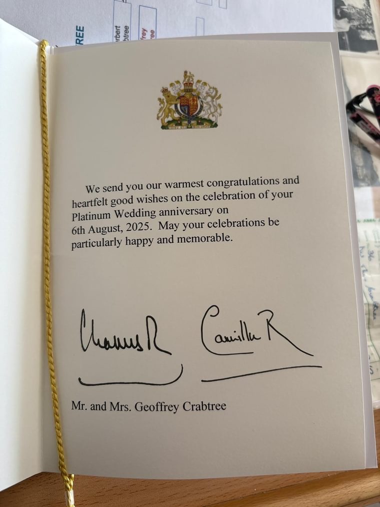 Meanwhile, a highlight of the morning was the arrival of a significant envelope which contained a card from King Charles and Queen Camilla. The royal couple offered their “warmest congratulations and heartfelt good wishes” – a lovely message for Dorothy and Geoffrey to read when they opened the card together.