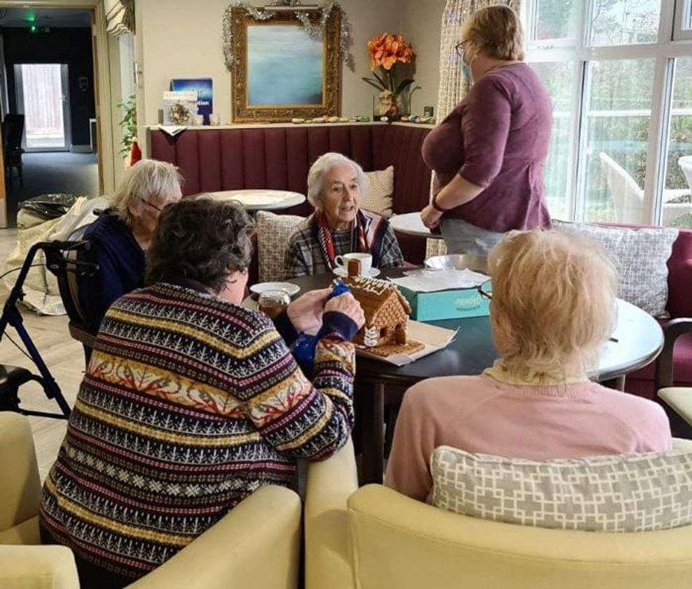 The residents and team at Blenheim Court Care Home split into two very competitive teams led by Charlotte (Wellbeing Lead) and Tess (Hospitality Manager) to create some festive gingerbread houses. Both teams worked really hard on their masterpieces and had a great time together with a lot of laughter. The final gingerbread houses have taken pride of place in the Bistro this week for everyone to see.