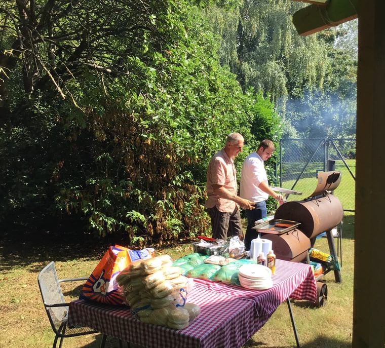 The barbecue was fired up and ready to go when the event started at 2.30pm and Eliott, who looks after the maintenance at Guysfield, was joined on grill duty by Trevor, a resident’s husband. Both worked incredibly hard to provide a steady flow of delicious barbecued chicken, lamb, burgers and Cumberland sausages, which were much appreciated by residents and their guests.