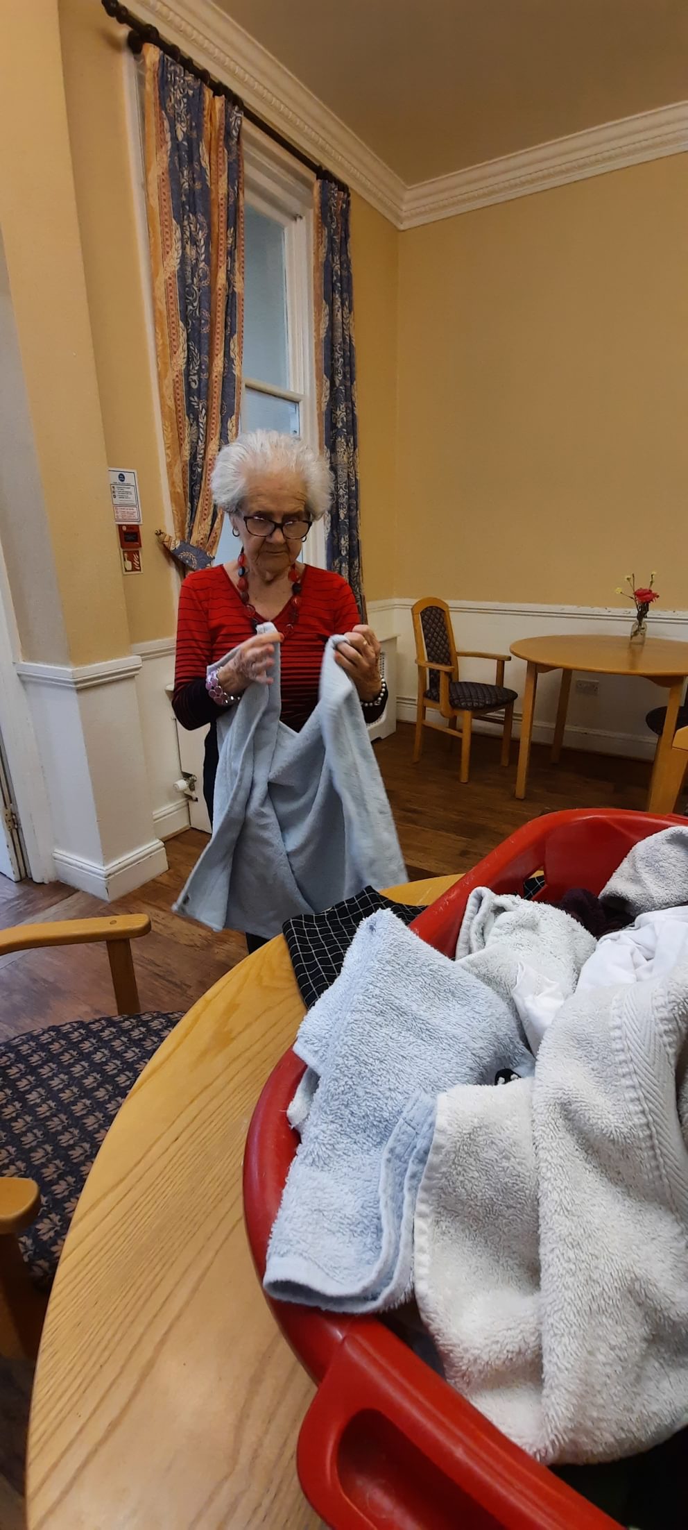 Today we encouraged teamwork and the ladies were singing, chatting and folding the laundry. Joy also assisted with setting the tables for lunch. When I said: "Thank you so much ladies for your hard work", Joy said, "I love helping out, I always looked after my home, and I used to be a teacher.