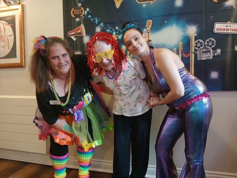The Open Day was packed with themed activities that transported everyone back to the colourful 1980s, beginning with morning cinema and a showing of the popular 80s classic, Footloose, complete with popcorn. Meanwhile, Jody and Leanne brought the glamour with bright nails and pampering one-to-one visits to residents across all the floors. Resident Bubbles loved the special treat for her nails, commenting, “The manicure made me feel really special – thank you for pampering us.”
