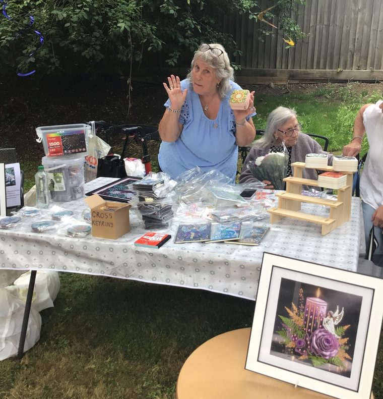 After break the party continued. Meanwhile, the arts and craft stall and tombola had been doing a roaring trade and all the money raised was donated to the Wellbeing team – a lovely gesture as the team will put the proceeds towards a variety of activities for the residents. Resident Rose’s daughter, Loraine, won a picture on the tombola and donated it back to Guysfield – a kindness that encapsulated the wonderful spirit of the day.