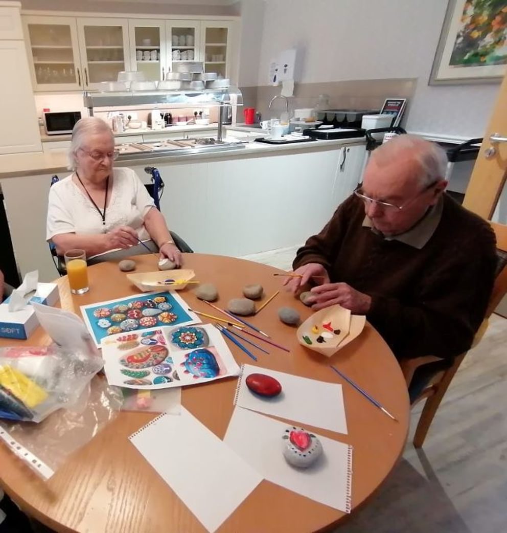 The residents and team had so much fun painting colourful images and words that make them happy on rocks, as part of our summer community project, which will be creating a wonderful rock garden for all the residents to enjoy. Horsell Lodge reached out to relatives and the local community inviting them to paint their own rocks and bring them into the home to add to the rock garden.