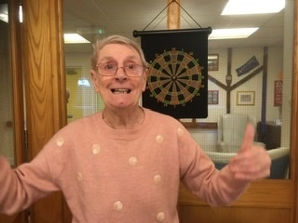 We have invested in two different dartboards, one is magnetic and the other electric, residents have had great fun, resident Maureen chatted to us about how her dad used to play darts and that she never tried but will have a go. Then when she scored a bullseye, she said "woohoo look at that I did it." We've also made a new game using giant playing cards laid out of the floor which involves resident's practising their maths adding scores together.