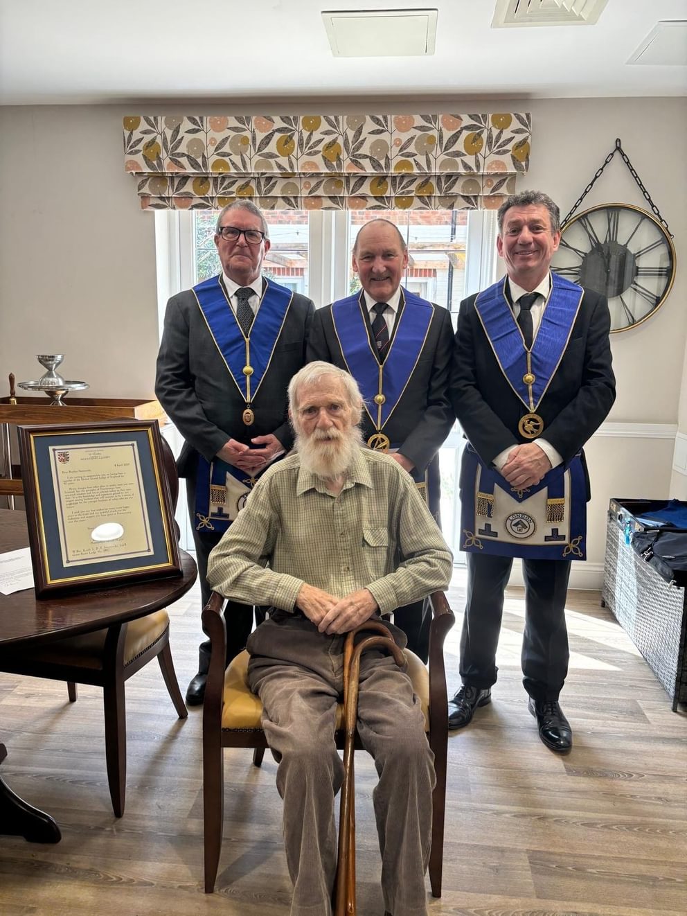 Last week, Keith was presented with a Long Service Award by fellow members of his Lodge, marking 50 years’ contribution to Freemasonry. The team at Parris Lawn Residential Care Home organised a special celebration in the lounge and Keith’s friends chatted with staff who were interested to find out about their charitable work. Everyone enjoyed tea and cake and it was lovely to see the pleasure that Keith’s visitors brought him. Keith explained that being a Freemason brings together like-minded people from all walks of life - one of the things he most enjoys - and when asked how he felt about his his long service award, he declared, “Overcome with pride”.