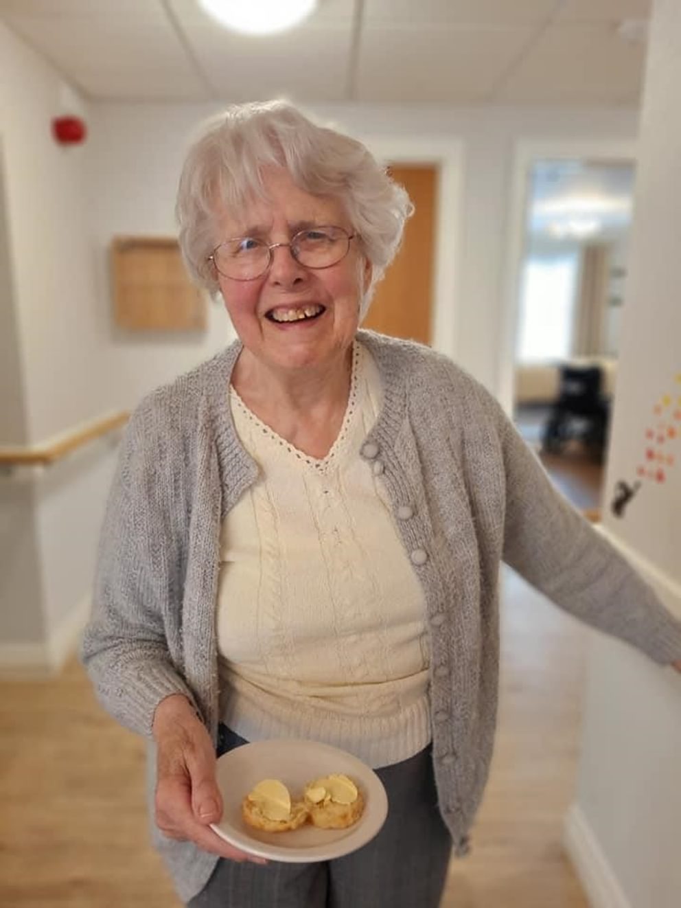 This week residents enjoyed baking Margaret’s cheesy scones, a recipe she enjoyed making when living at home. The wonderful smells wafted through The Orchard as they baked, and then everyone sat down with a cuppa to enjoy their hard work. Seeing the other residents join in making her recipe and and everyone enjoying them afterwards filled Margaret with a sense of pride.