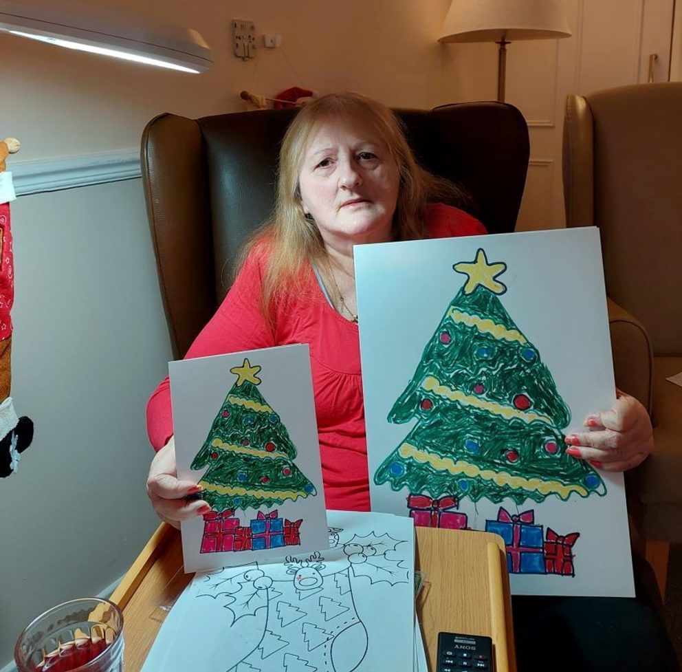 Residents and staff at Brooklyn House Care Home are delighted that a design by resident Caroline Powell and Wellbeing Coordinator Catrina Harrison are being used for the home’s Christmas card this year.