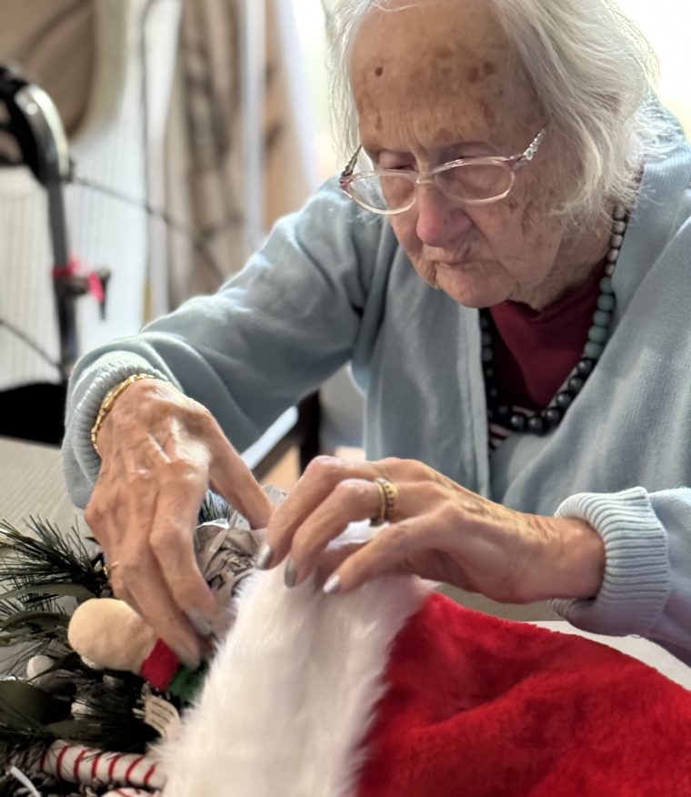 Peggy then chose the residents’ morning activity - Scrabble and her favourite board games. A keen participant in many of the activities organised by the Wellbeing team, Peggy was a contributor to the design of last year’s Christmas Wreath competition entry, inspired by the Elf on the Shelf, which revealed her mischievous side! Peggy also loves hats and the Homefield team presented her with a new one for summer – an especially useful gift for such a sunny May.