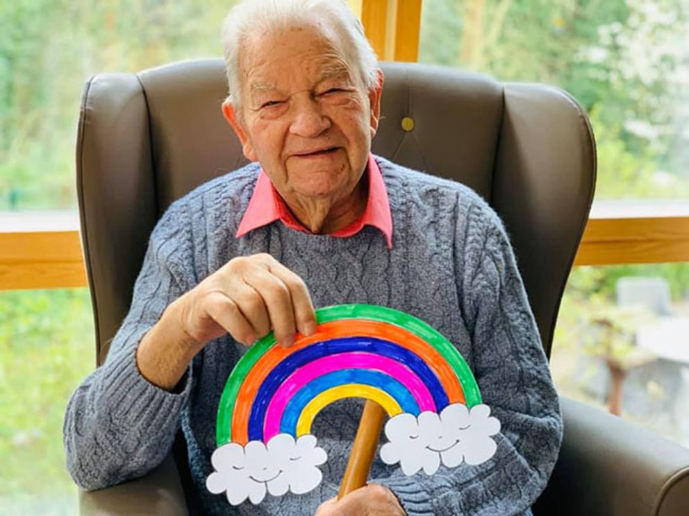 Whittington House Nursing Home's couple Gerald and Evelyn have been busy colouring rainbows this week as part of a national initiative to spread positivity and hope during the current coronavirus outbreak.